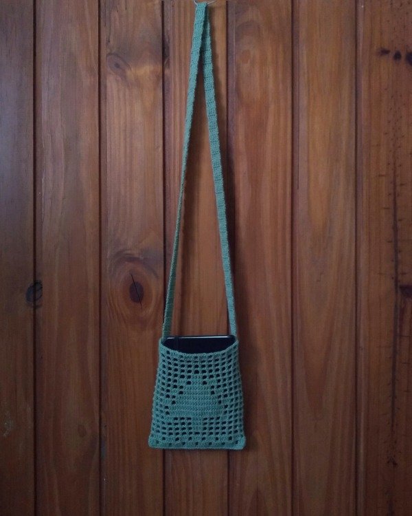 El bolso Alegres Navidades es un diseño tejido con la técnica de filet crochet, una técnica simple que con un solo hilo permite crear diseños únicos y relajantes de tejer.